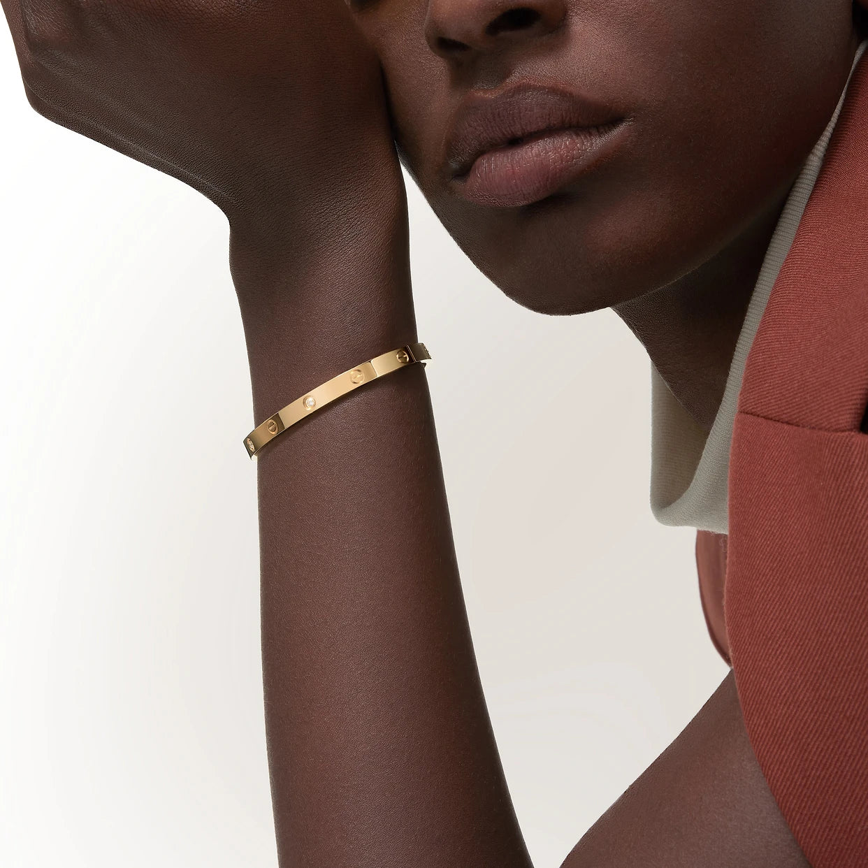 - Design: Inspirat de stilul Cartier Love, cu 4 diamante de tăiere briliant de 0.19 carate