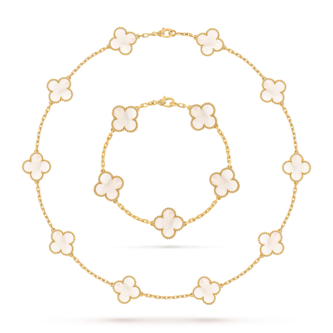Colierul și brățara din Setul Van Charm Alb sunt accesoriile perfecte pentru a adăuga un plus de rafinament oricărei ținute. Realizate din oțel inoxidabil placat cu aur de 14K, cu accente albe delicate și un design atemporal, acest set îmbină perfect eleganța modernă cu simplitatea clasică.